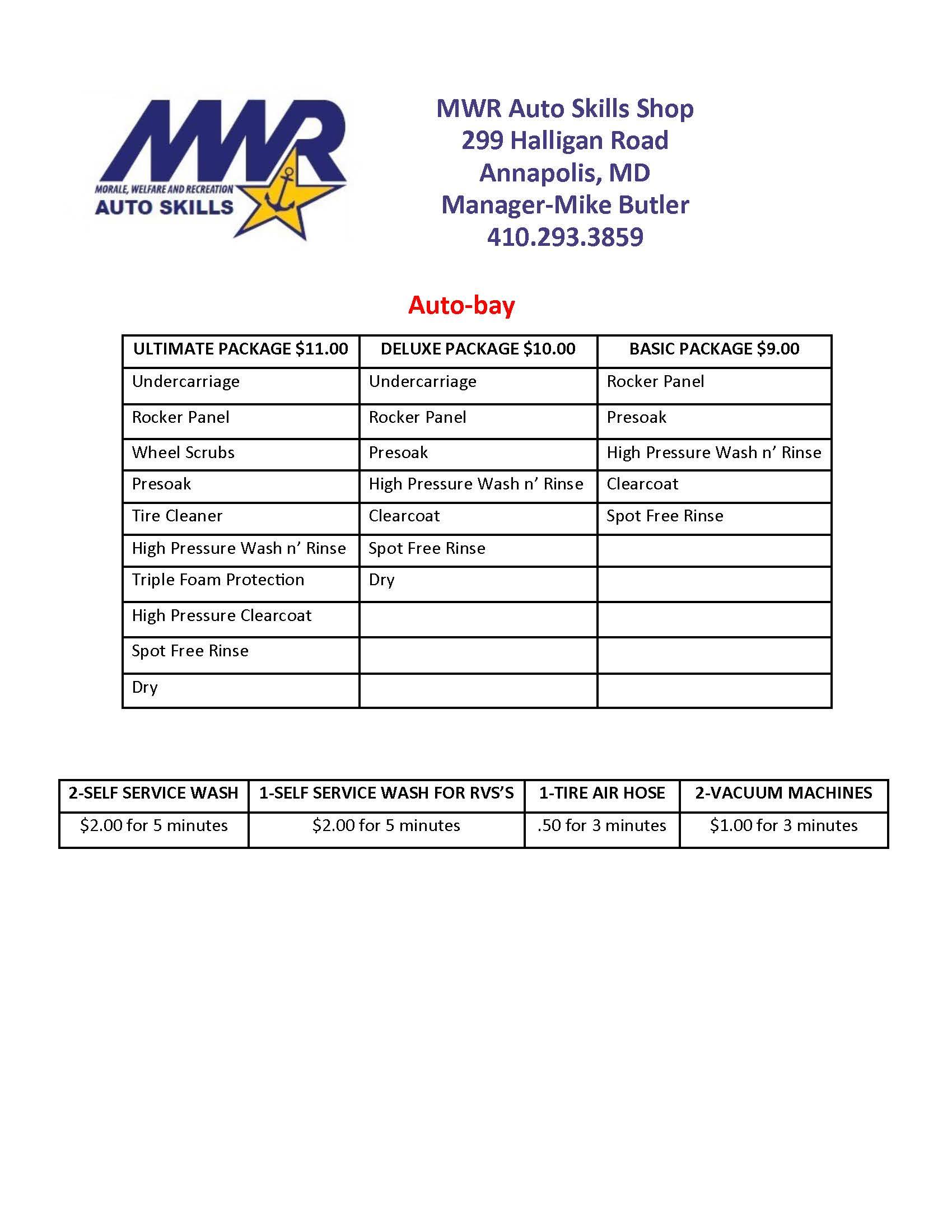 MWR’s Car Wash is a 24/7 facility located next to the Navy Exchange Gas Station. The car wash includes an auto-bay, two self-service wash bays, and a self-service wash bay for RVs's. We also have vacuums, carpet shampooer and tire air hose. Cash (dollars) or credit cards may be used.